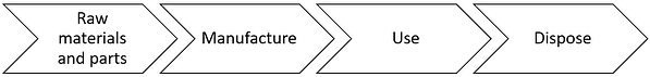Traditional linear product design system (take-make-use-dispose approach)