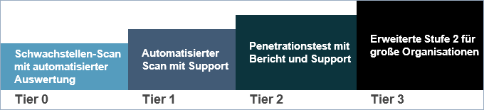 Der genaue Bedarf an Schwachstellen-Scans/Penetrationstests variiert von Unternehmen zu Unternehmen. Um ihn besser einschätzen zu können, hat Nemko ein Servicemodell entwickelt, bei dem jede "Stufe" der Servicebereitstellung progressiv fortgeschrittener und gründlicher ist.