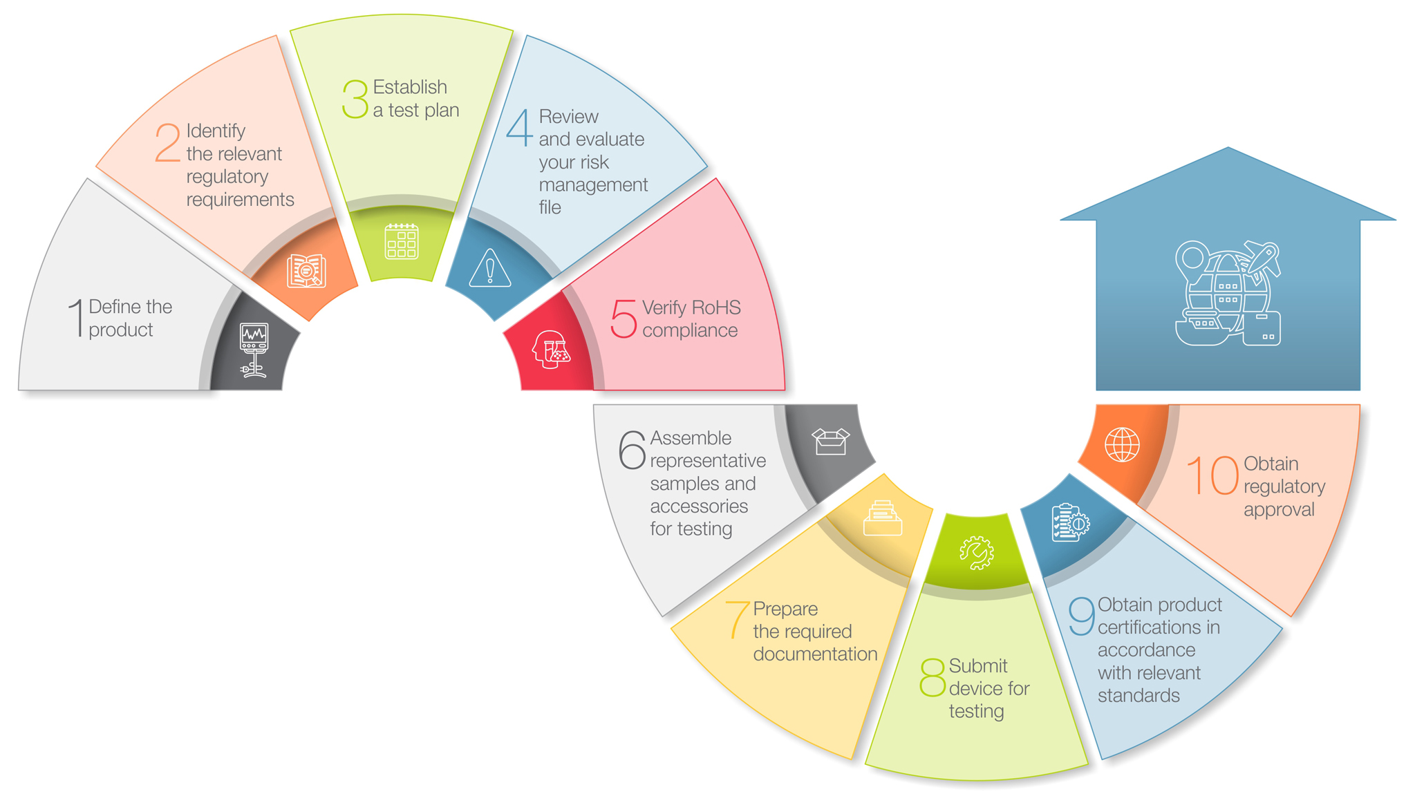 Eine vereinfachte Roadmap, die Sie durch das behördliche Prüfungs- und Zulassungsverfahren für Medizinprodukte in den wichtigsten Märkten führt.