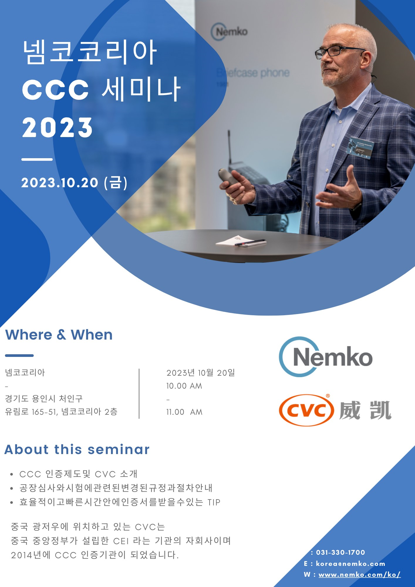 넴코코리아는 10월 고객 세미나에 여러분을 초대하게 되어 기쁩니다. 이번 세미나는 국제 승인 및 인증에 대한 귀중한 통찰을 제공하기 위해 마련된 행사입니다. 이 세미나는 제조업체, 엔지니어, 규정 준수 담당자 등 글로벌 시장 접근 및 인증 프로세스에 대한 최신 동향을 이해하고자 하는 산업 전문가를 위한 행사입니다.