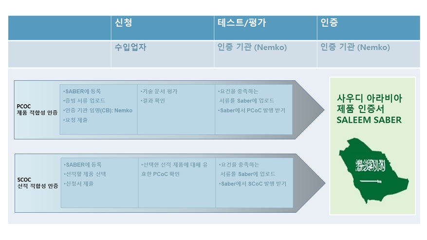 Saber 시스템을 통한 제품 적합성 인증서(PCoC) 및 선적 적합성 인증서(SCoC)의 획득은, 제품이 사우디아라비아의 기술 규정 및 안전 기준을 충족한다는 것을 증명합니다. 이는 소비자에게 높은 품질과 안전성을 보장하는 동시에, 기업에게는 사우디아라비아 시장에서의 경쟁력을 강화하는 기회를 제공합니다.