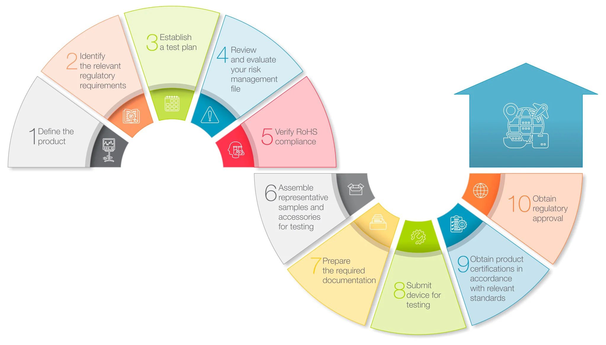 Her er et forenklet veikart for å hjelpe deg gjennom den regulatoriske gjennomgangen og godkjenningsprosessen som gjelder for medisinsk utstyr i de fleste større markeder.