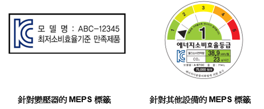 - MEPS註冊過的產品,在產品上標識能效標籤,以數位1-5顯示能效等級。其中適配器和充電器使用單獨標籤。