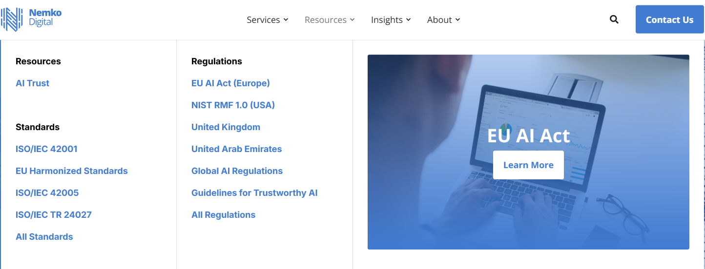 Nemko Digital 提供有關全球AI 法規發展資訊,風險分類和管理,全球市場准入,AI管理系統、培訓等服務。歡迎關注Nemko Digital 網站,瞭解AI相關的法規,標準詳情以及Nemko的服務。您也可以加入 AI-Trust hub,隨時獲取有關AI領域的最新資訊。