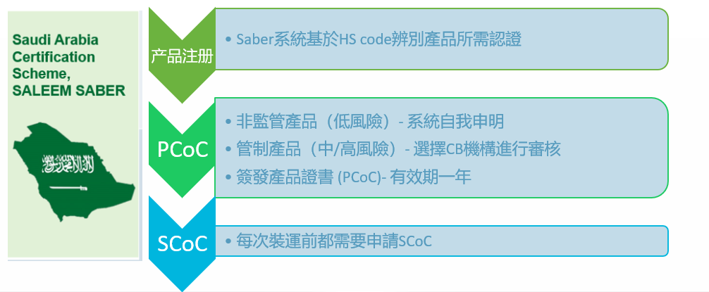 SASO 建立了Saber系統,以供使用者線上完成產品註冊,並取得進口產品認證。 凡進口到沙烏地阿拉伯市場的產品,不論是否有受到監管,都必須首先在Saber完成註冊,再按指定的程式完成相關認證。
